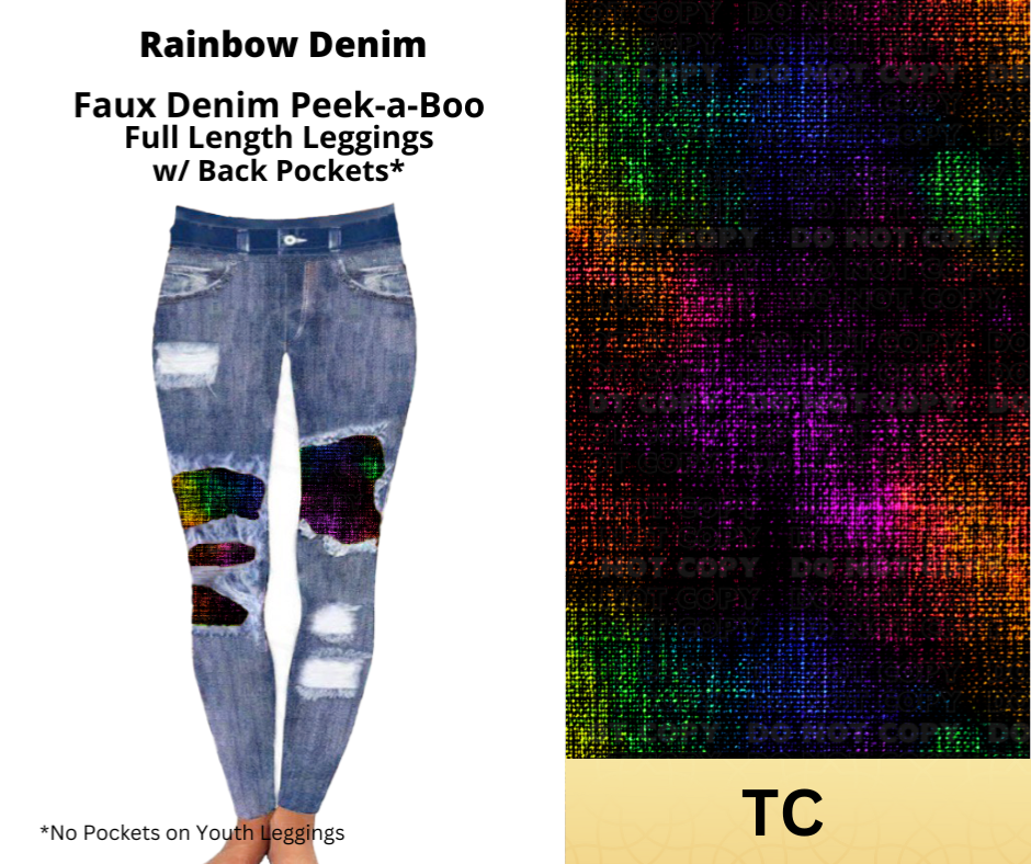 Rainbow Denim Faux Denim Full Length Peekaboo Leggings