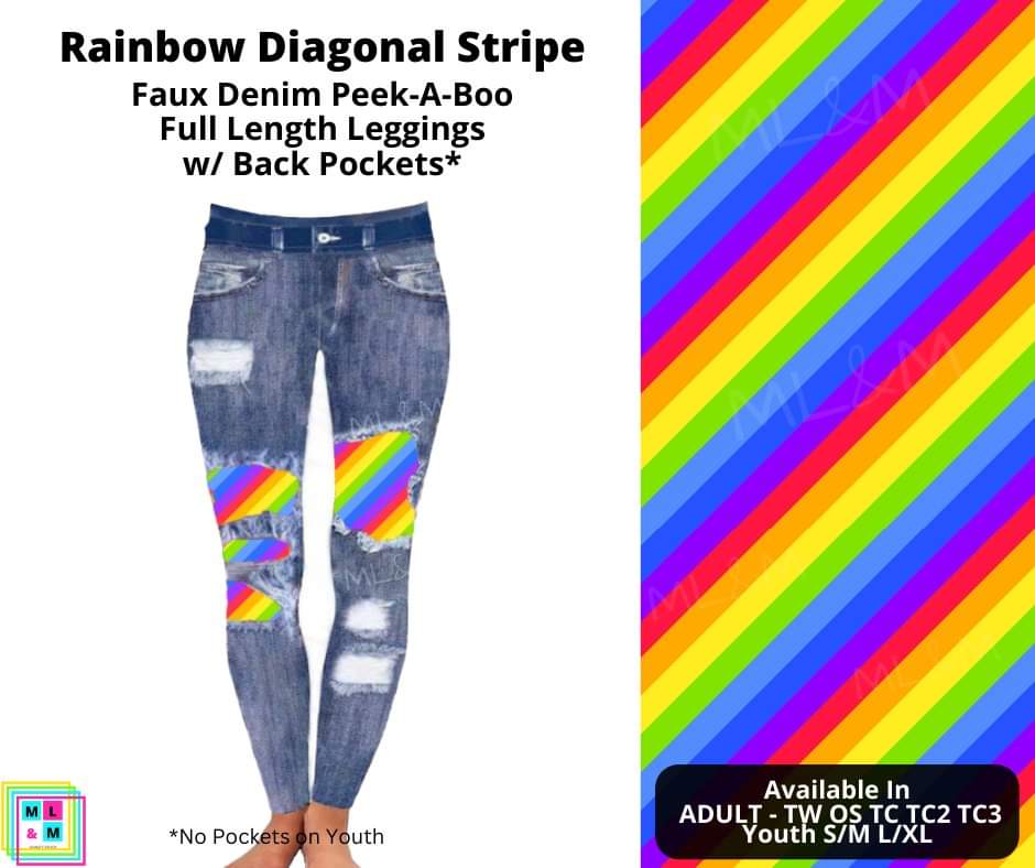 Rainbow Diagonal Stripe Faux Denim Full Length Peekaboo Leggings