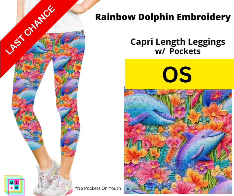 Rainbow Dolphin Embroidery Capri Length w/ Pockets