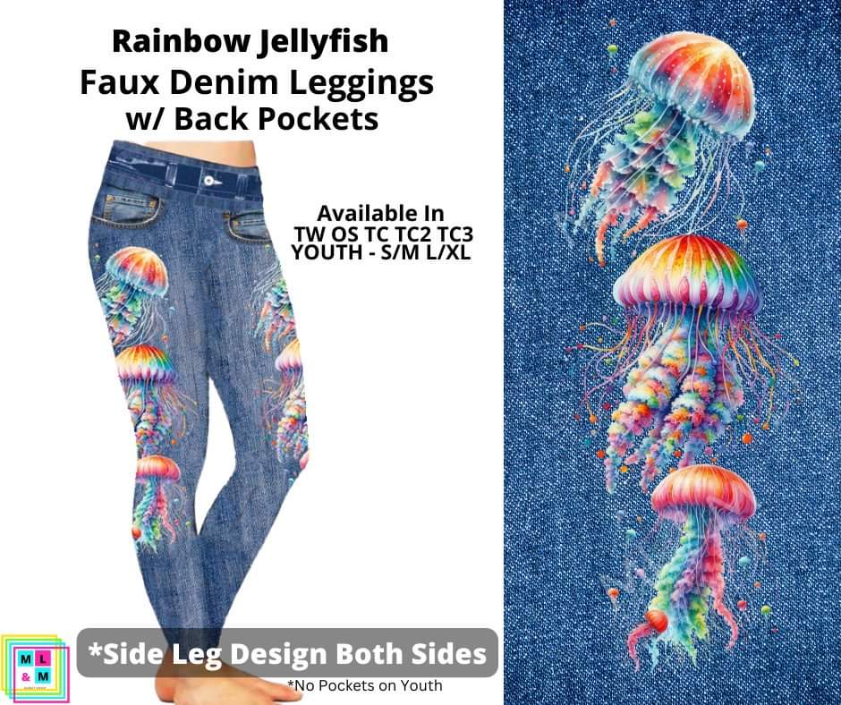Rainbow Jellyfish Full Length Faux Denim w/ Side Leg Designs
