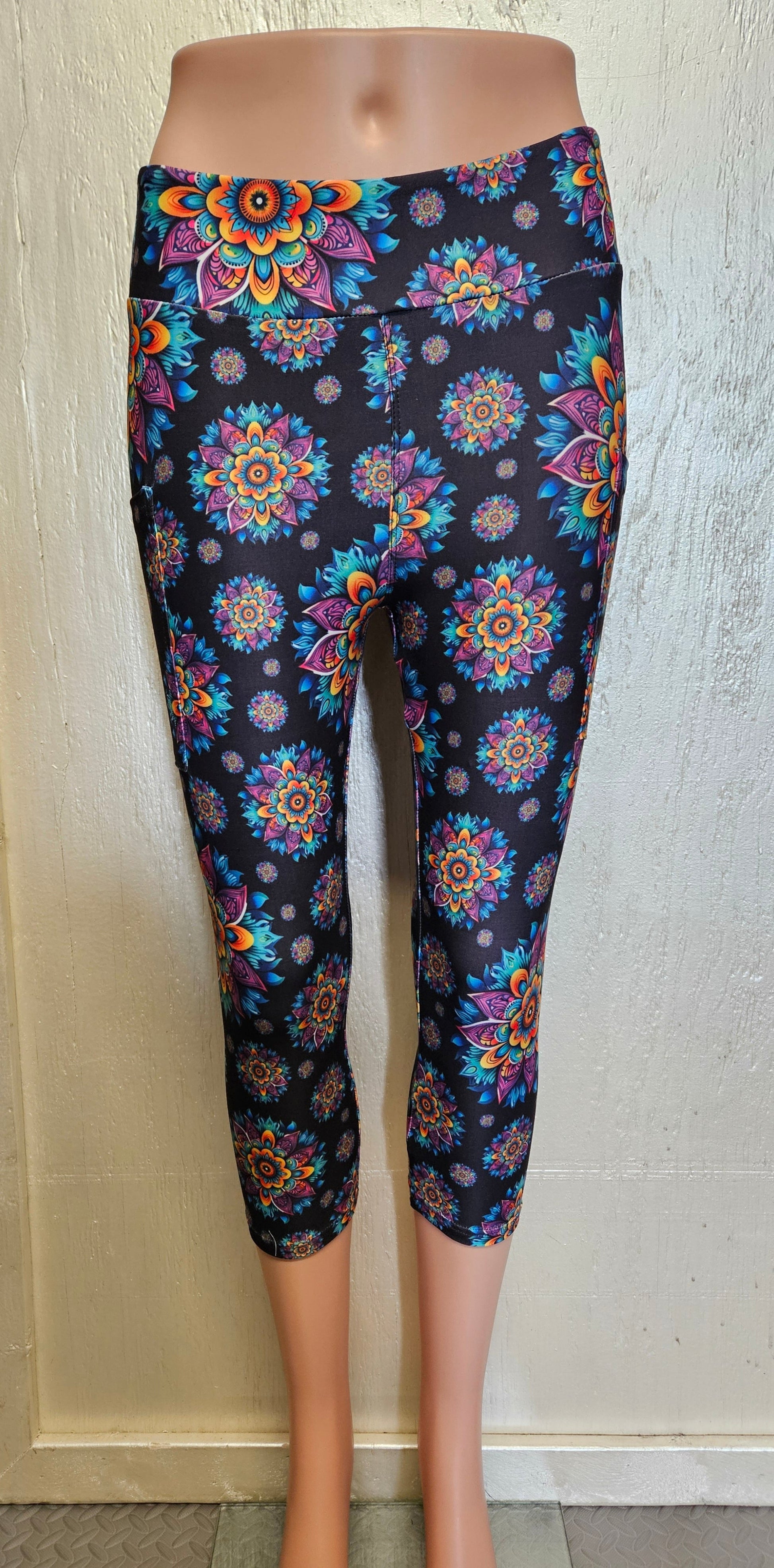Rainbow Mandala capris with pockets