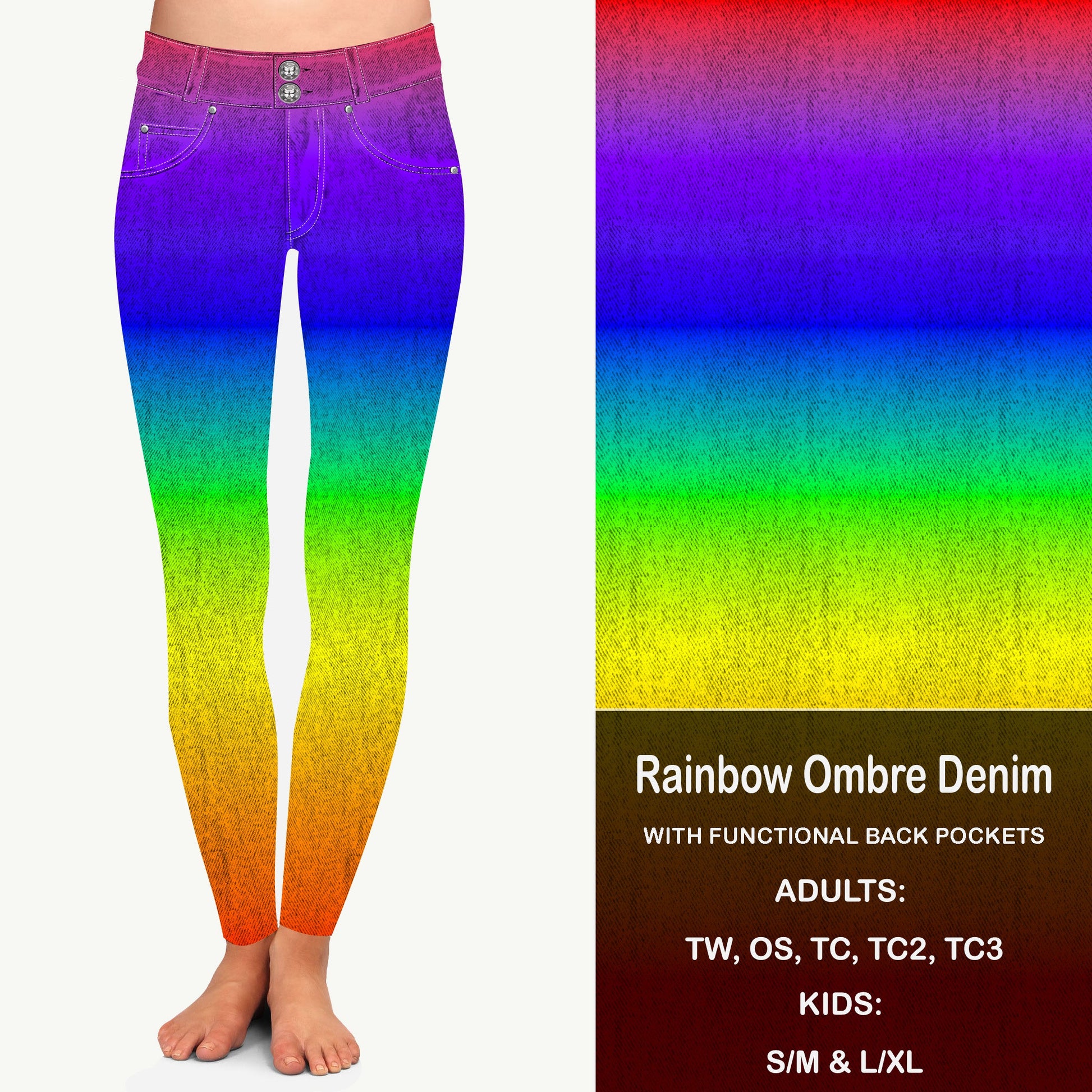 RAINBOW OMBRE FAUX DENIM - Leggings with Pockets Preorder Closes 8/21 ETA LATE SEPT EARLY OCT
