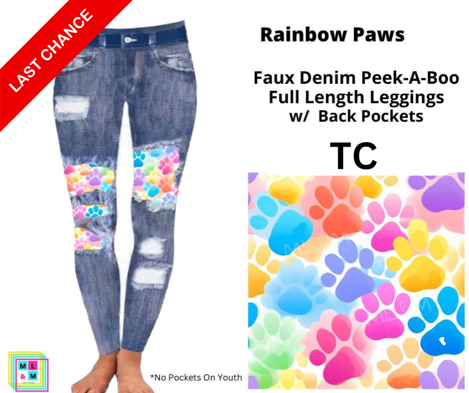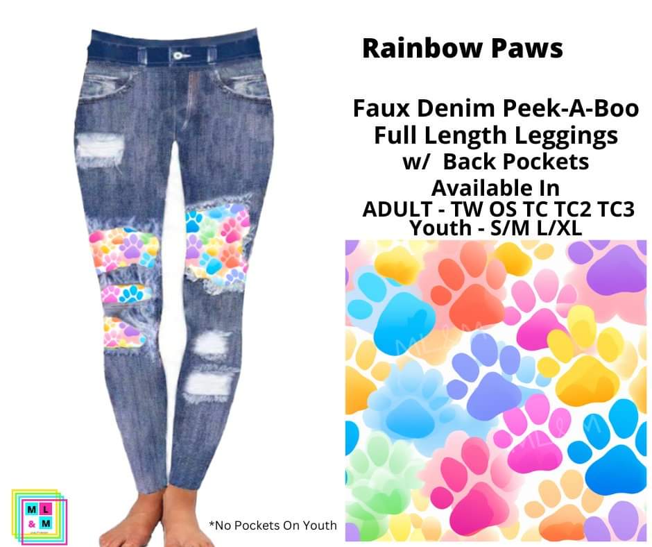 Rainbow Paws Faux Denim Full Length Peekaboo Leggings