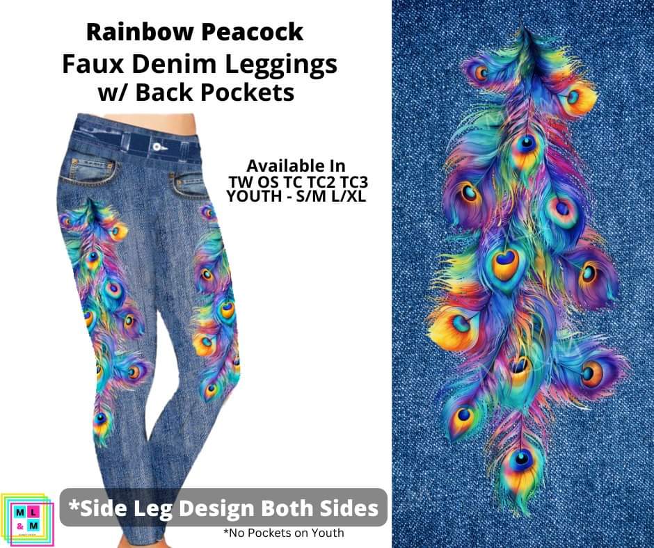 Rainbow Peacock Full Length Faux Denim w/ Side Leg Designs