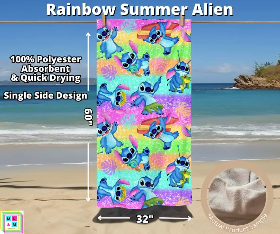 Rainbow Summer Alien Towel