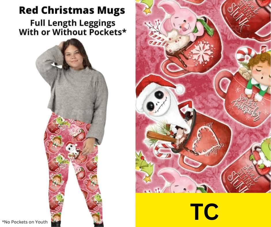 Red Christmas Mugs Full Length Leggings w/ Pockets