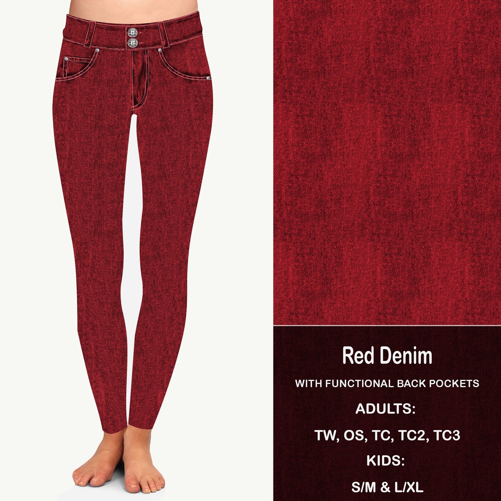 RED FAUX DENIM - Leggings with Pockets Preorder Closes 8/11 ETA LATE SEPT EARLY OCT