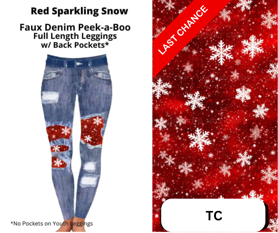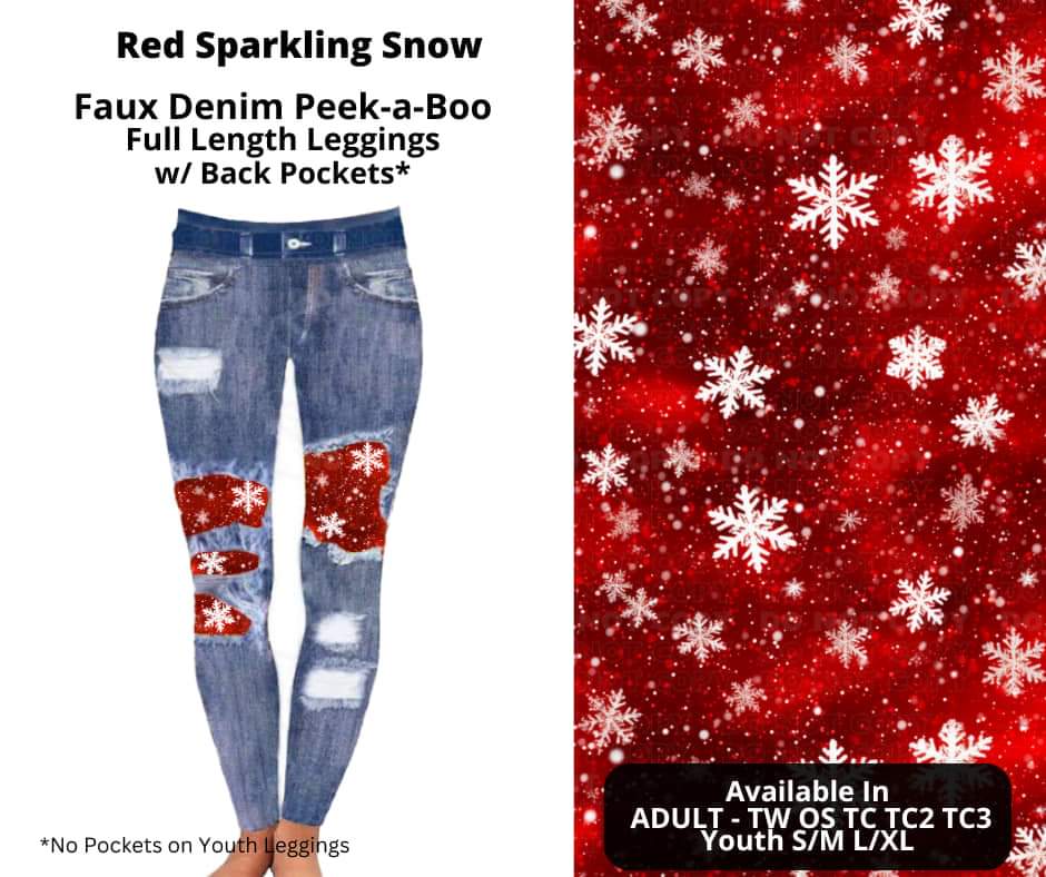 Red Sparkling Snow Faux Denim Full Length Peekaboo Leggings