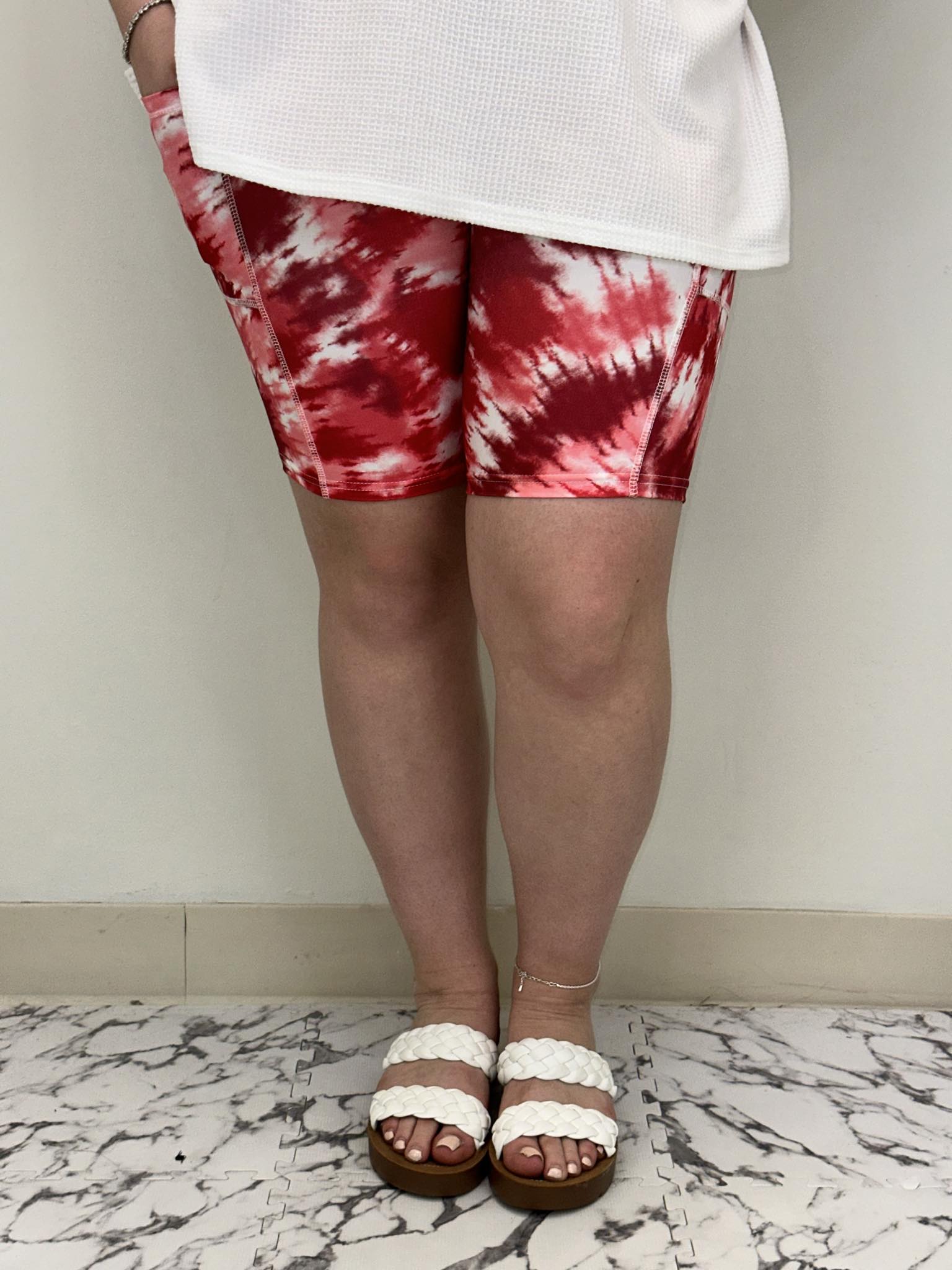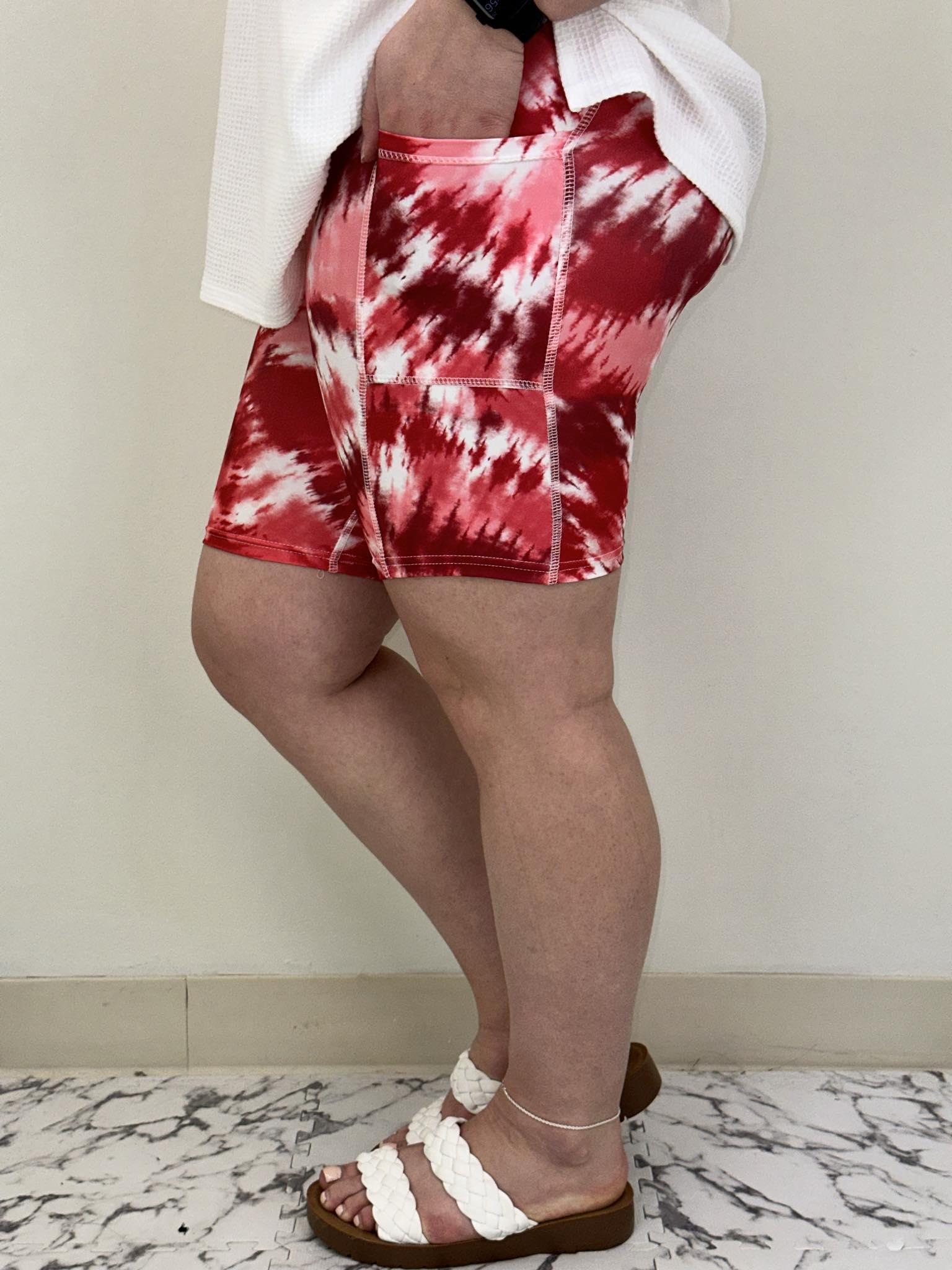 Red Tie Dye Biker Shorts w/ Pockets