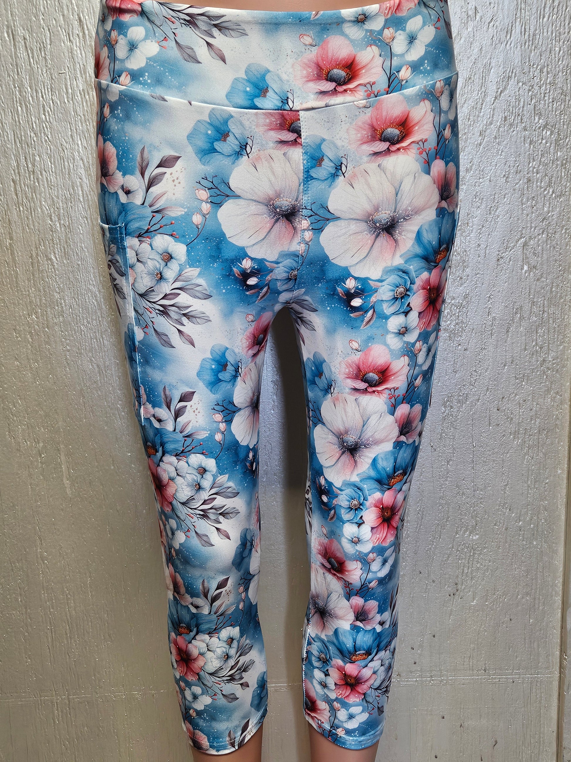 Red, White, and Blue Hibiscus leggings and capris with pockets