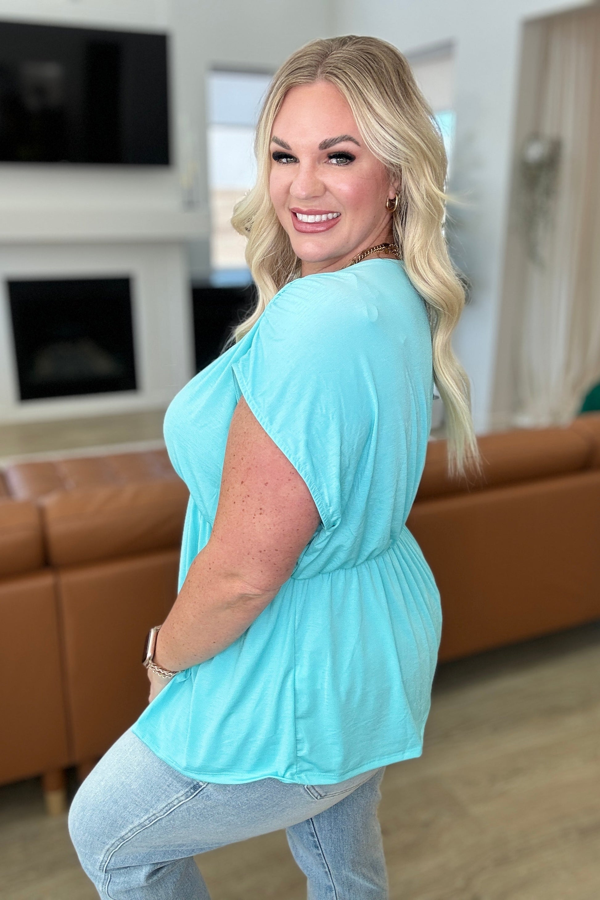 Rhea Peplum Top in Neon Blue