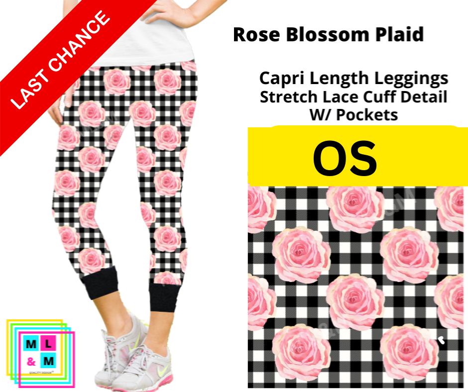 Rose Blossom Plaid Lace Cuff Capris w/ Pockets