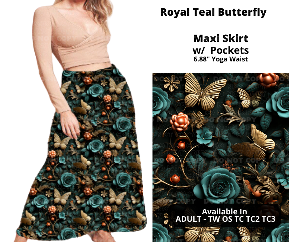 Royal Teal Butterfly Maxi Skirt