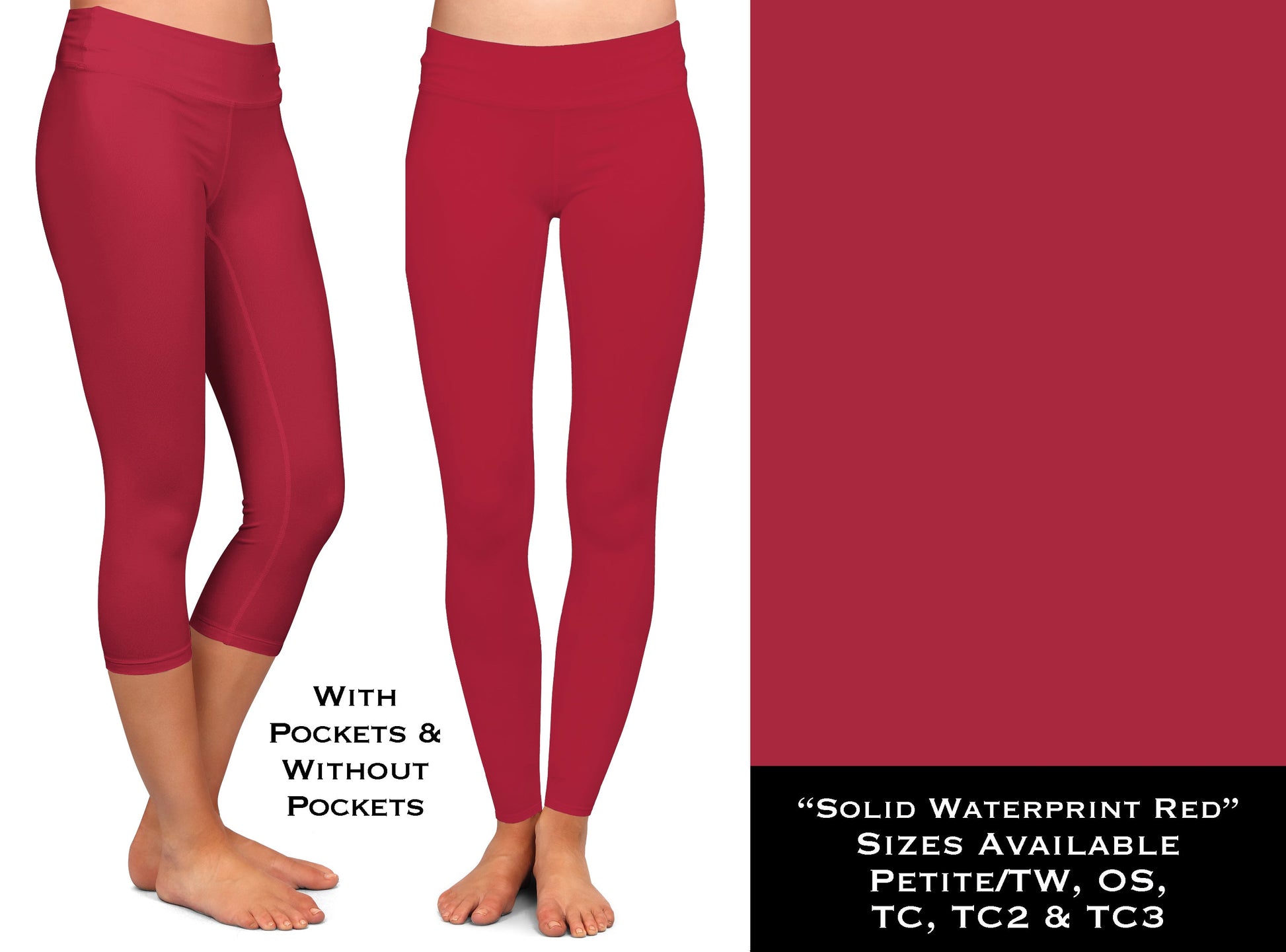 Solid RED Waterprint Full & Capri Leggings