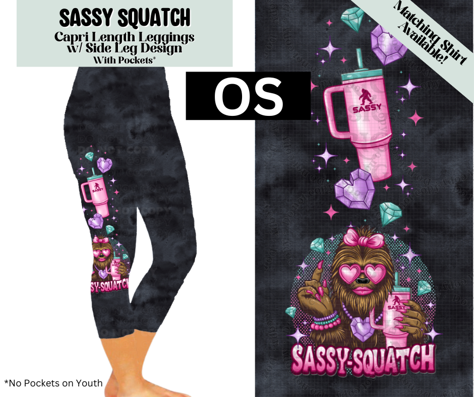 Sassy Squatch Capri Leggings w/ Side Leg Designs