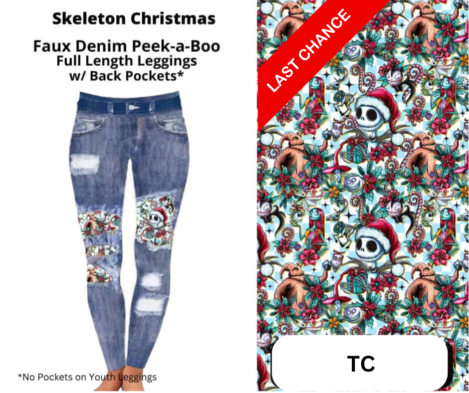 Skeleton Christmas Faux Denim Full Length Peekaboo Leggings