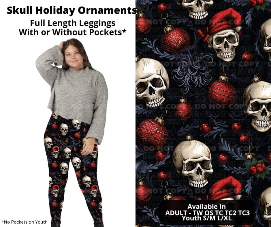 Skull Holiday Ornaments Full Length Leggings w/ Pockets