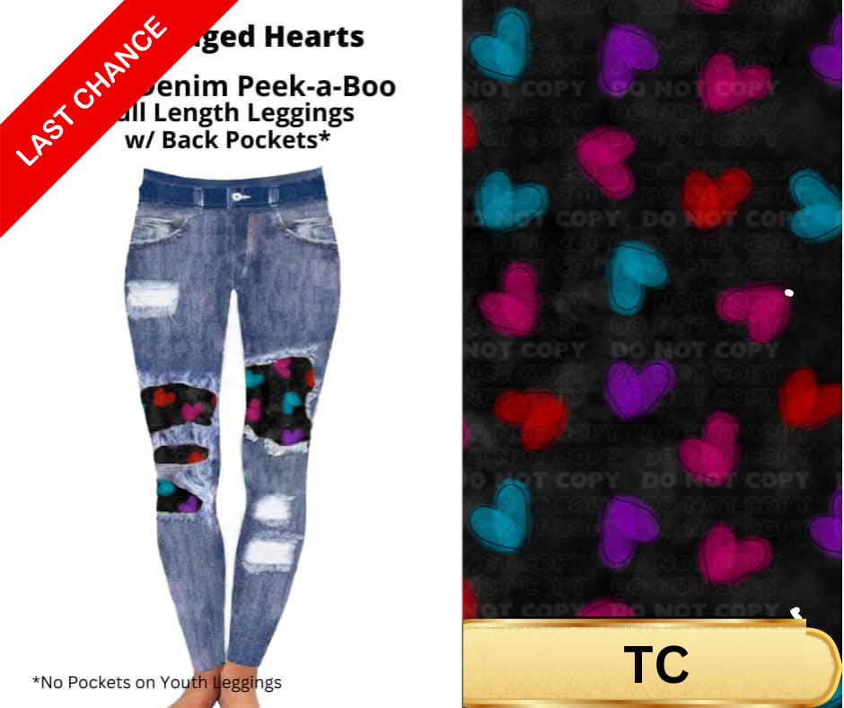 Smudged Hearts Faux Denim Full Length Peekaboo Leggings