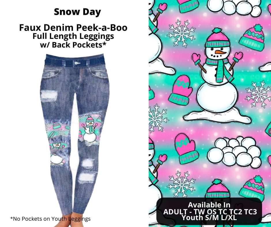 Snow Day Faux Denim Full Length Peekaboo Leggings