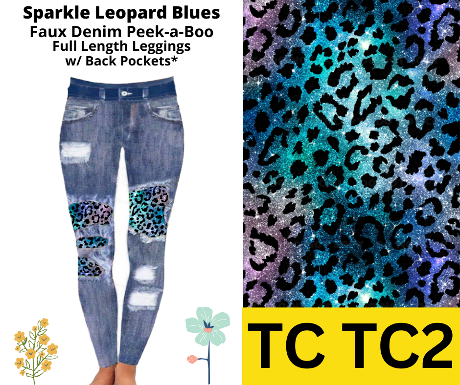 Sparkle Leopard Blues Faux Denim Full Length Peekaboo Leggings