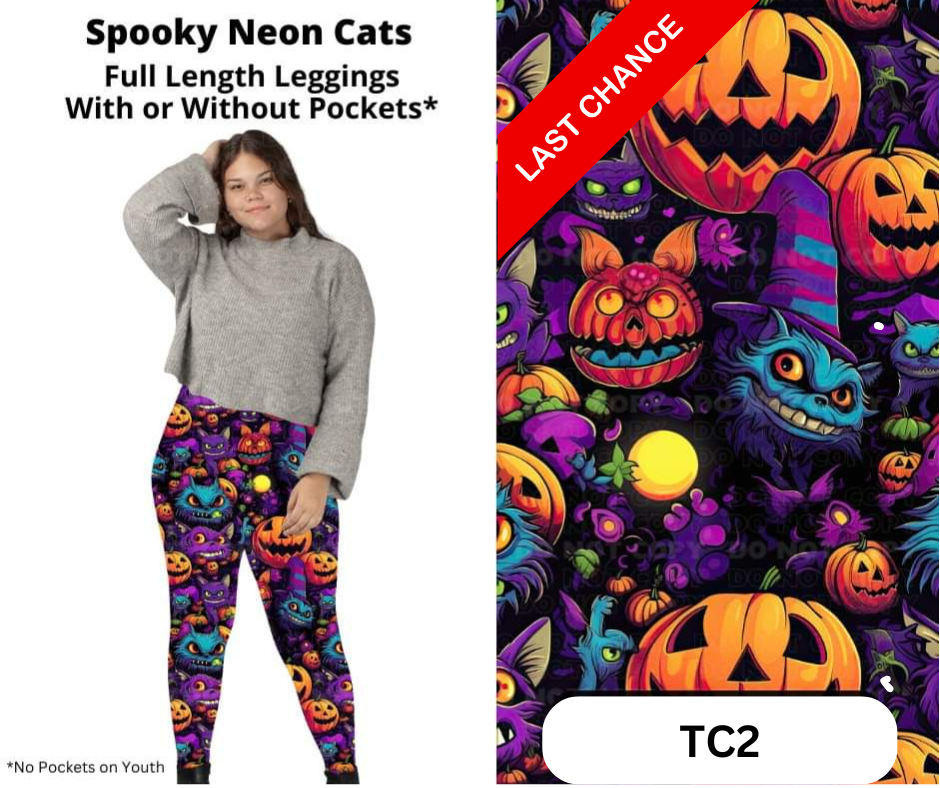 Spooky Neon Cats Full Length Leggings w/ Pockets