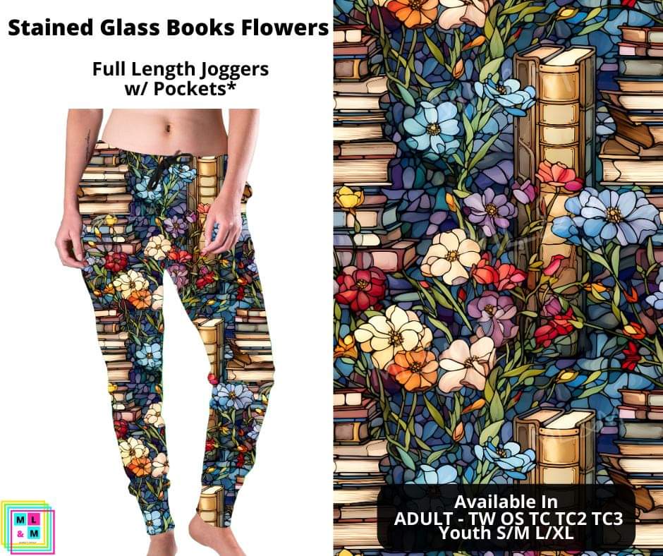 Stained Glass Books Flowers Joggers