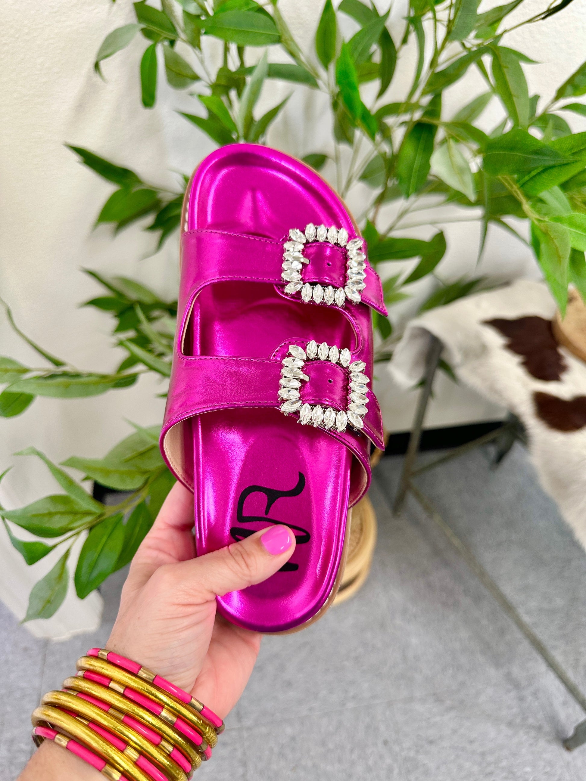 These Metallic Fuschia slides are absolutely stunning!