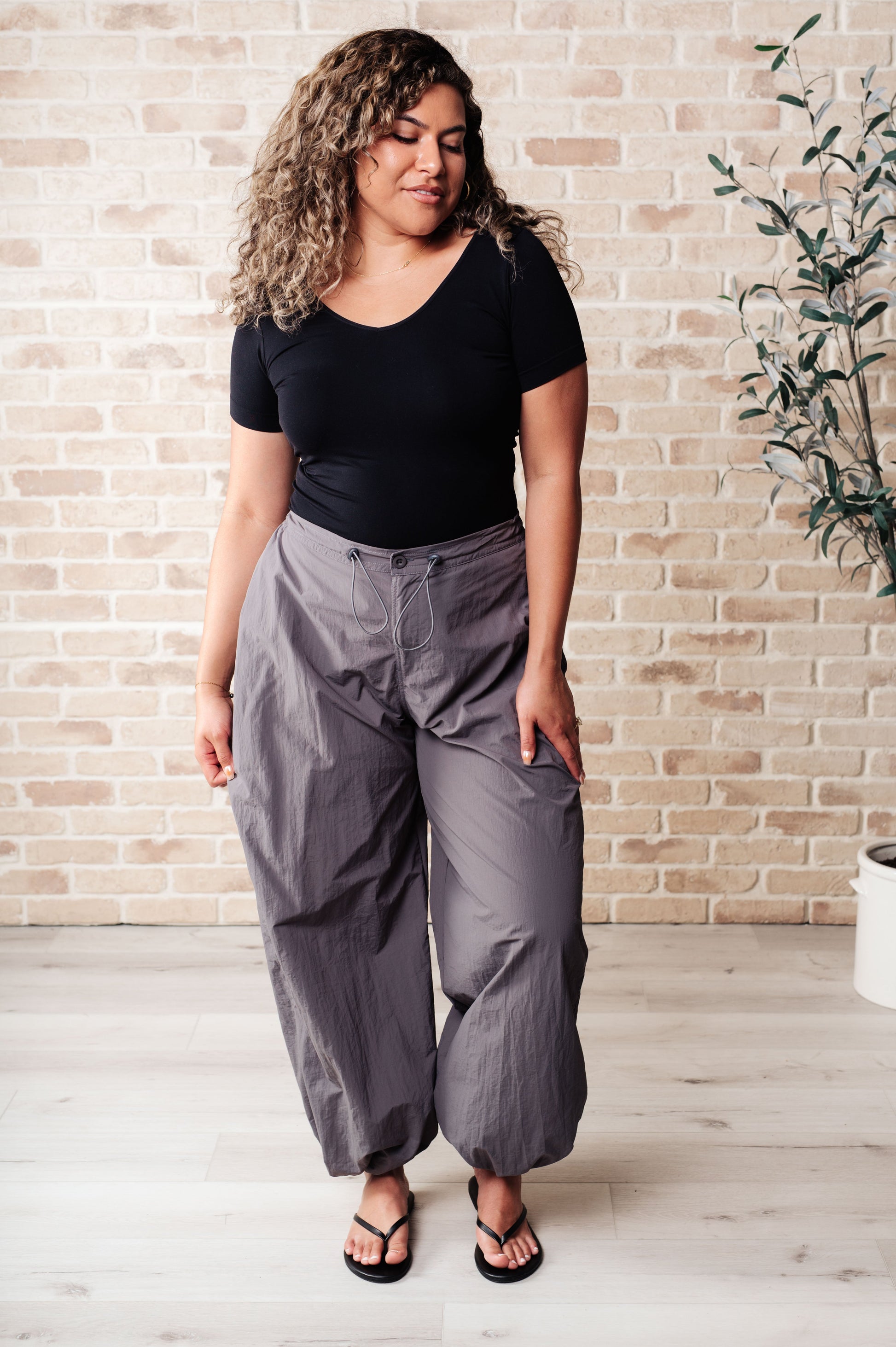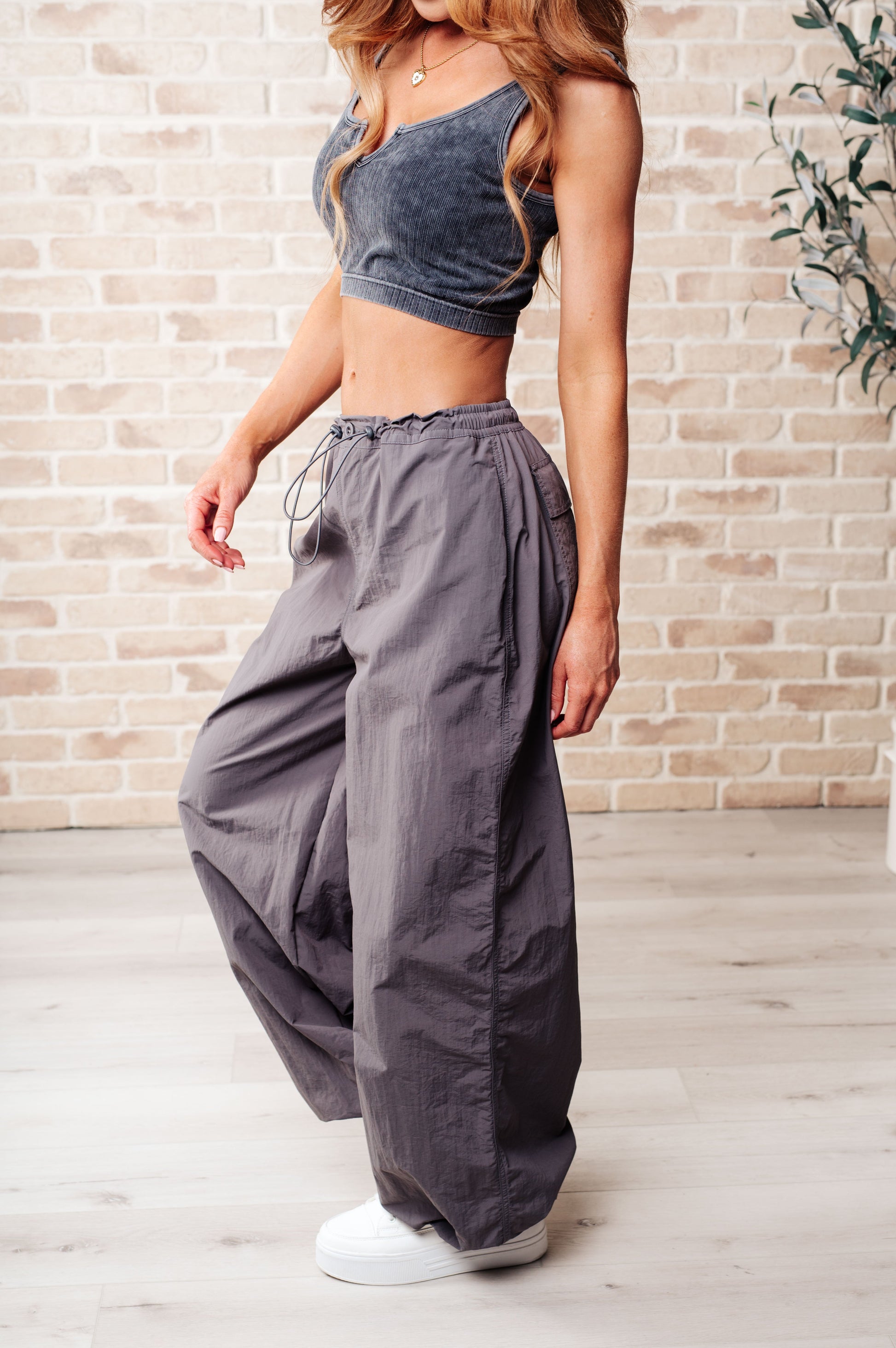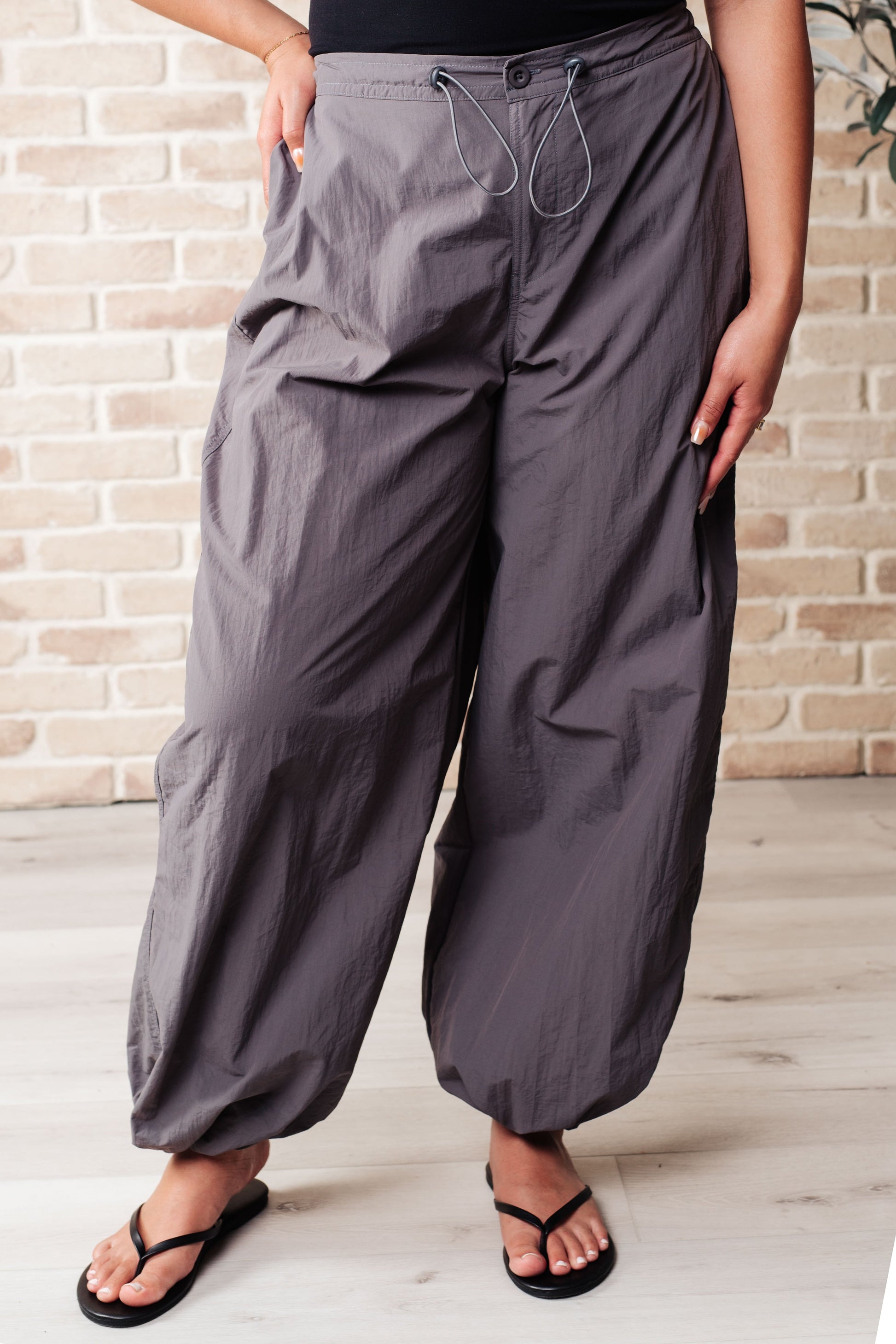 Elevate your wardrobe with our Step Up Joggers in Grey! These woven joggers feature a trendy parachute style with an elastic drawstring waistline and button and zipper closure. Plus, with functional patch and side pockets, and an elastic drawstring cuff, these joggers are both stylish and practical.