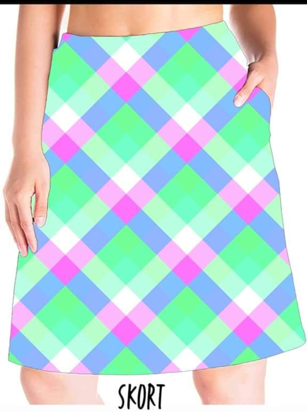 Welcome to our new skort line! These lightweight pocketed skirts have shorts underneath for cool comfort with protection for windy days! Great for everyday wear, working out or a night on the town!