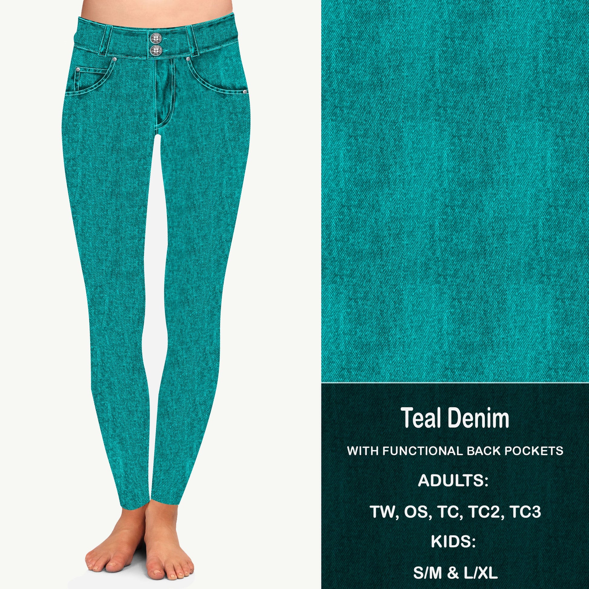 TEAL FAUX DENIM - Leggings with Pockets Preorder Closes 8/11 ETA LATE SEPT EARLY OCT