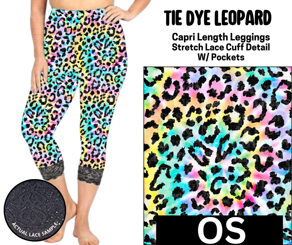 Tie Dye Leopard Lace Cuff Capris w/ Pockets