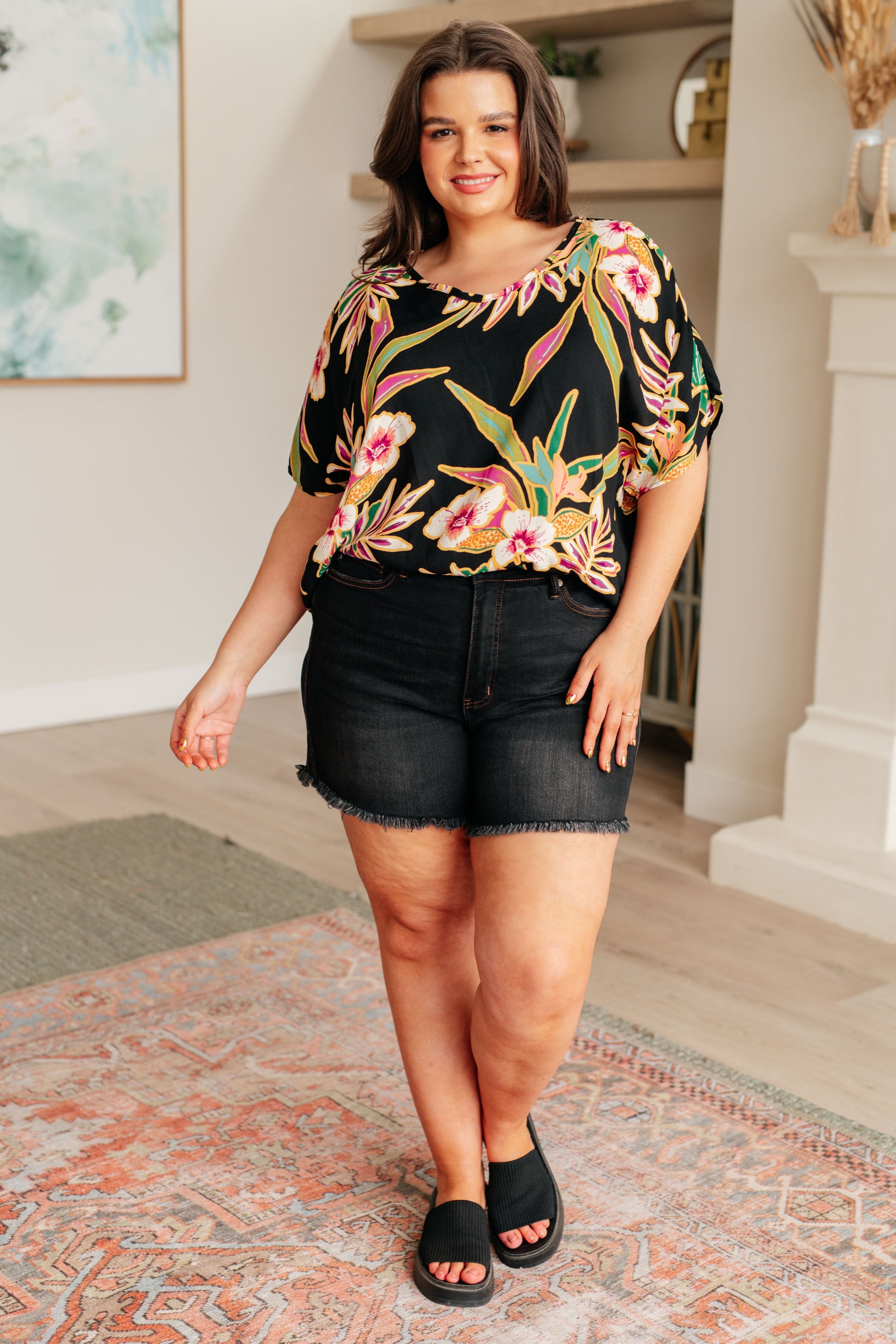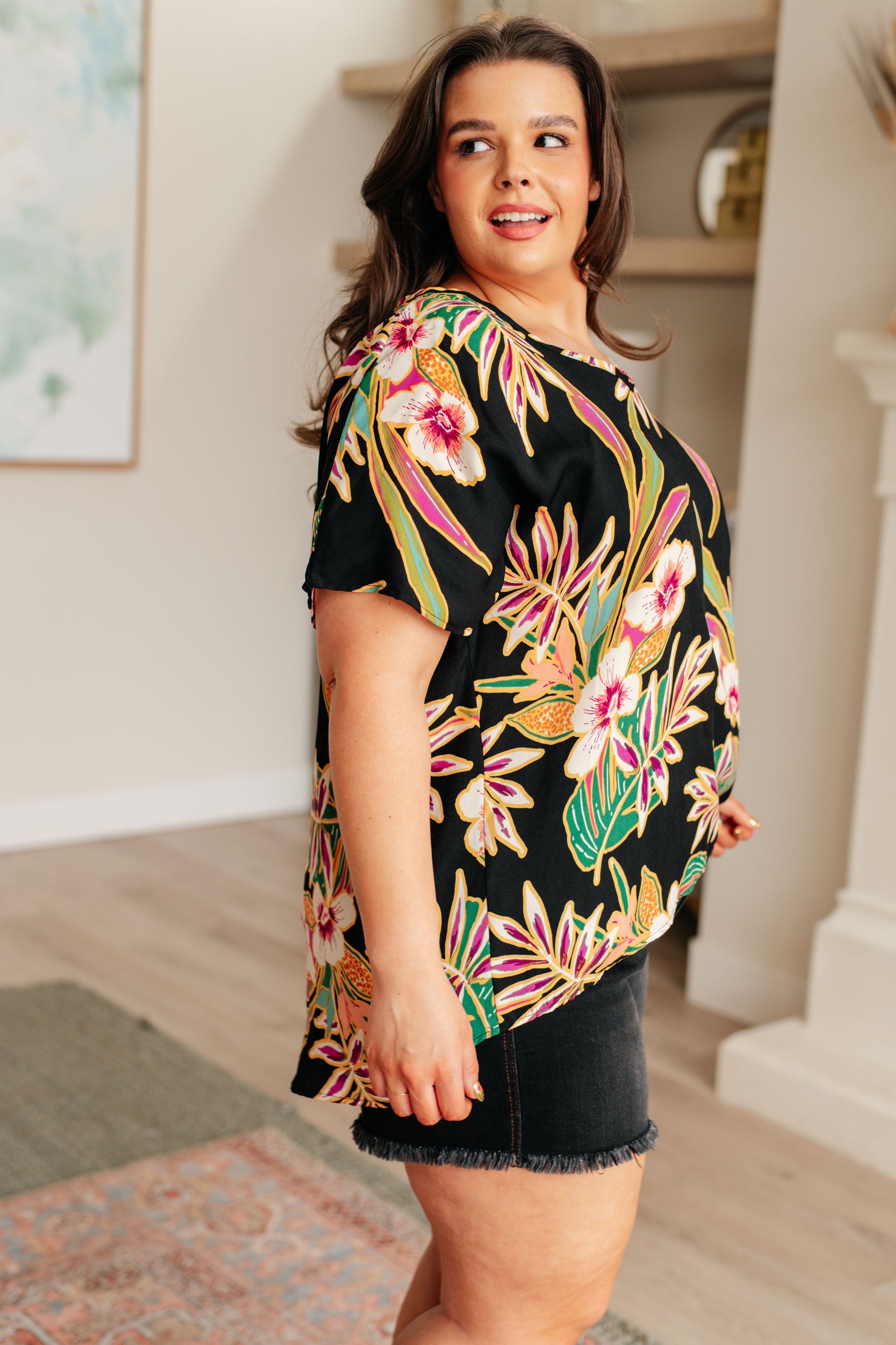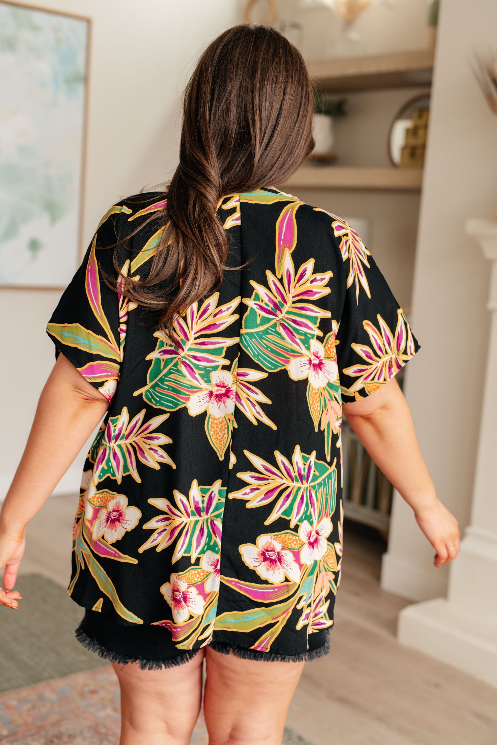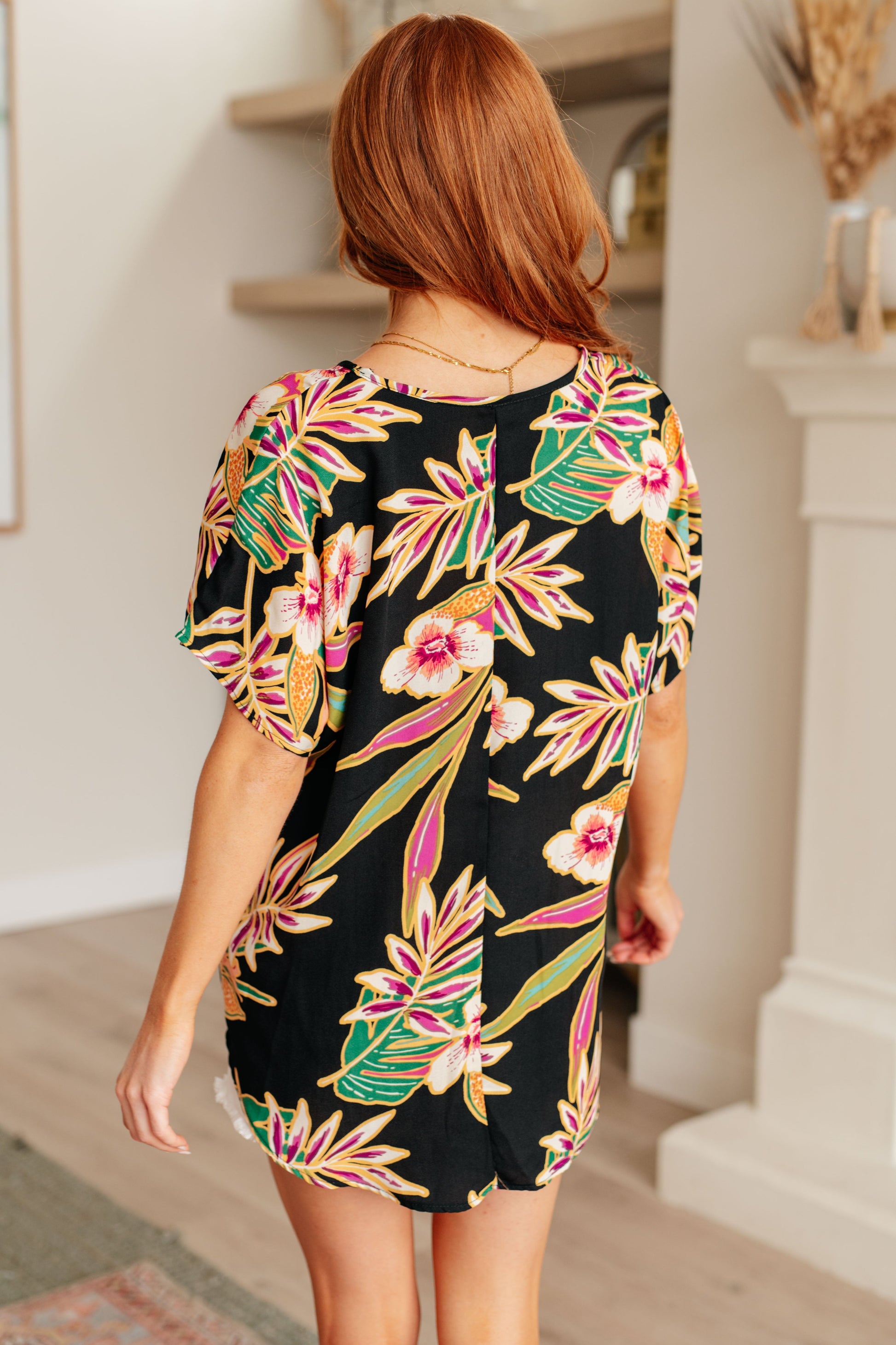 Be the epitome of laid-back island vibes in our Tropical Bouquet V-Neck Top! With a scooped neck, dolman sleeves, and a curved high low hem, this woven top will have you feeling both chic and carefree. Perfect for any summer day!