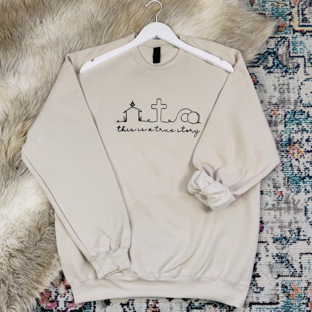 The cutest embroidered sweatshirt - perfect for Easter or any day! Black stitching on a sand Gildan crew.