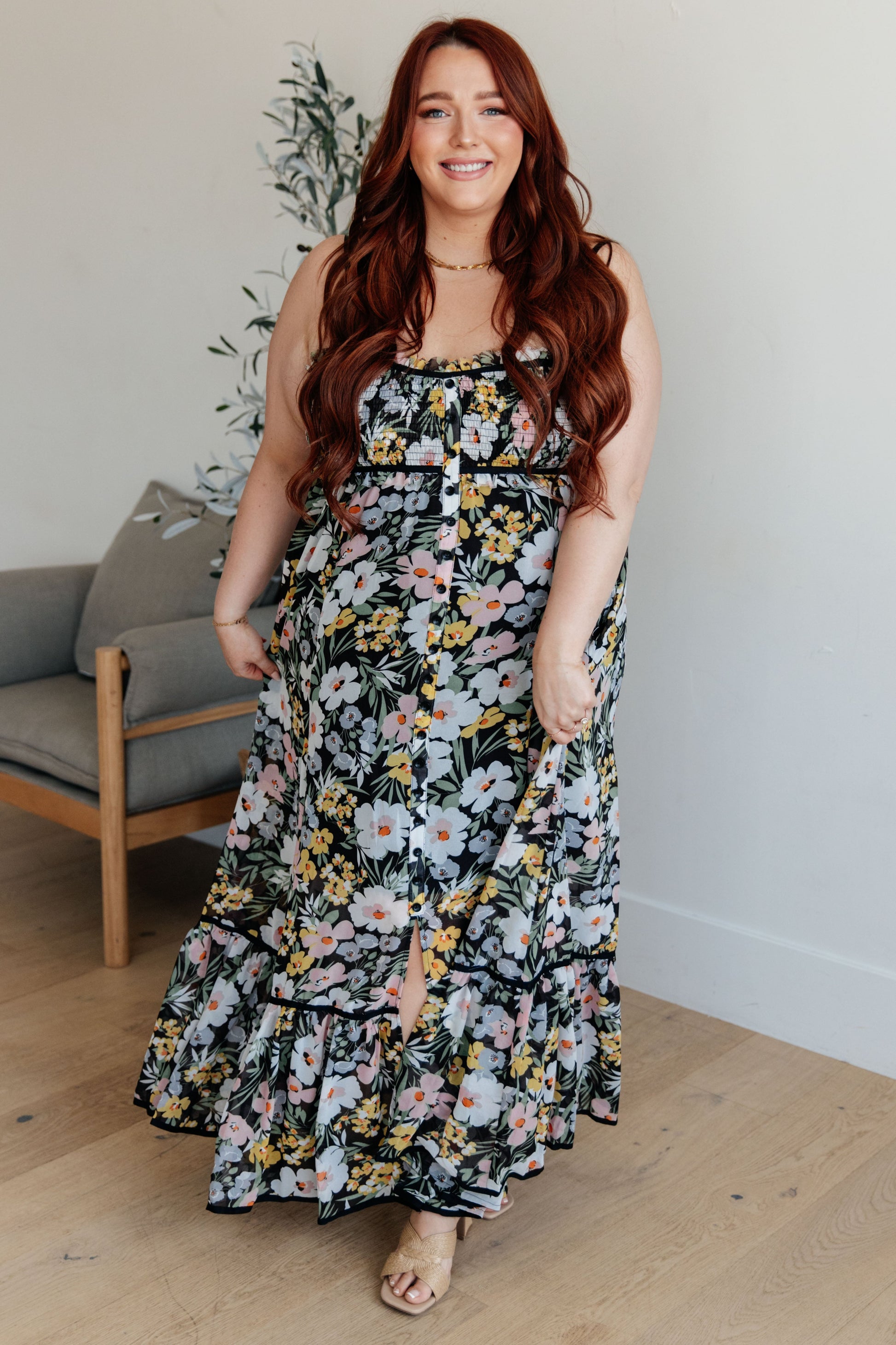 Rise like a Phoenix in our Up From the Ashes Floral Maxi Dress. With raw edge details and a smocked bodice, this fully lined dress is both stylish and comfortable. Faux buttons add a touch of charm while adjustable straps and a tiered ruffle skirt provide dimension. You'll feel born again!
