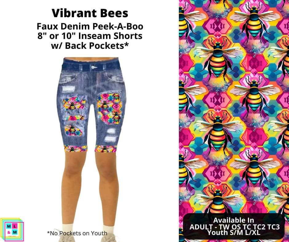 Vibrant Bees Faux Denim Shorts w/ Back Pockets