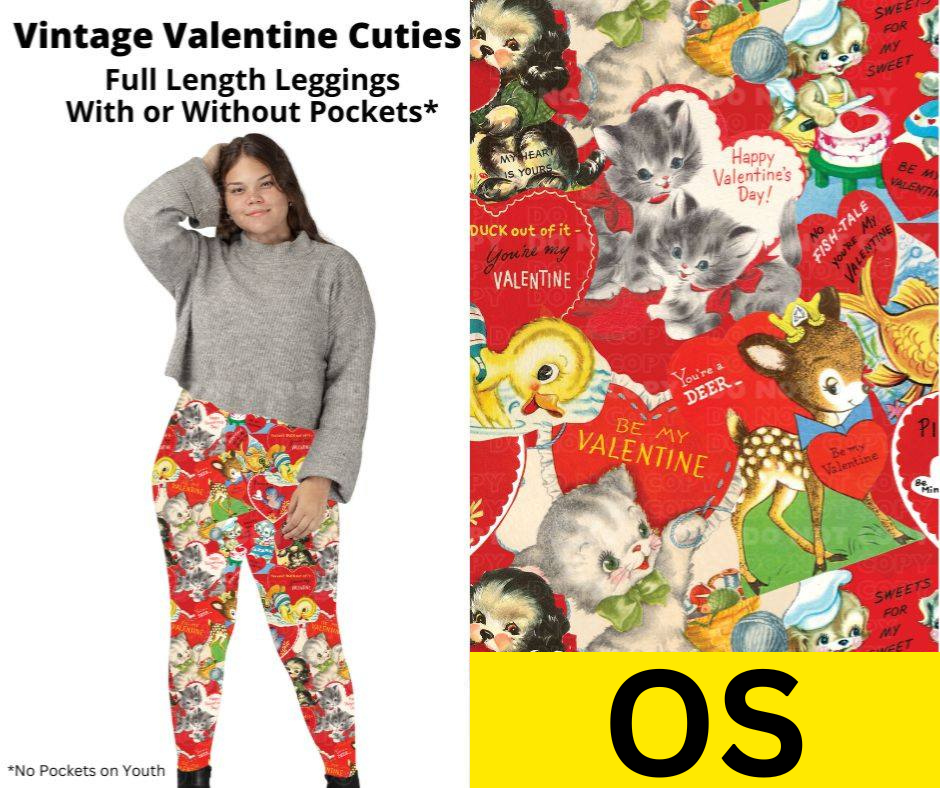 Vintage Valentine Cuties Full Length Leggings w/ Pockets