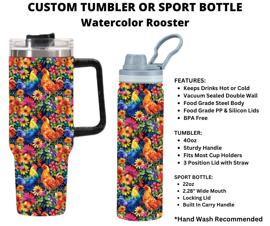 Watercolor Rooster Custom Tumbler or Sport Bottle