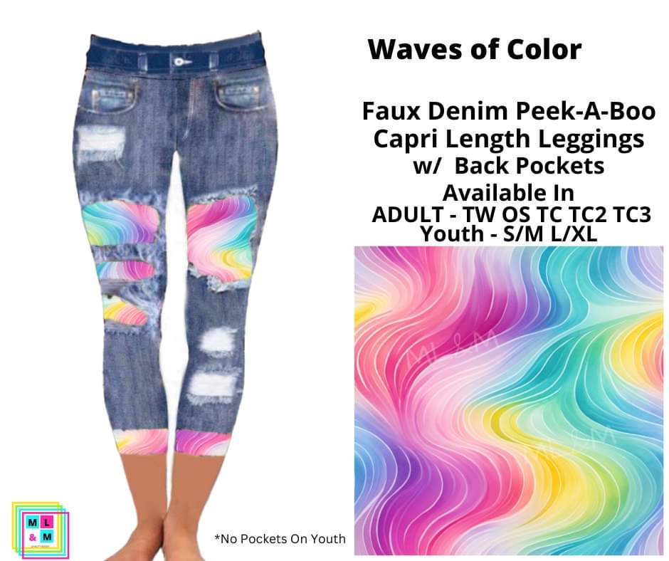 Waves of Color Faux Denim Peekaboo Capris