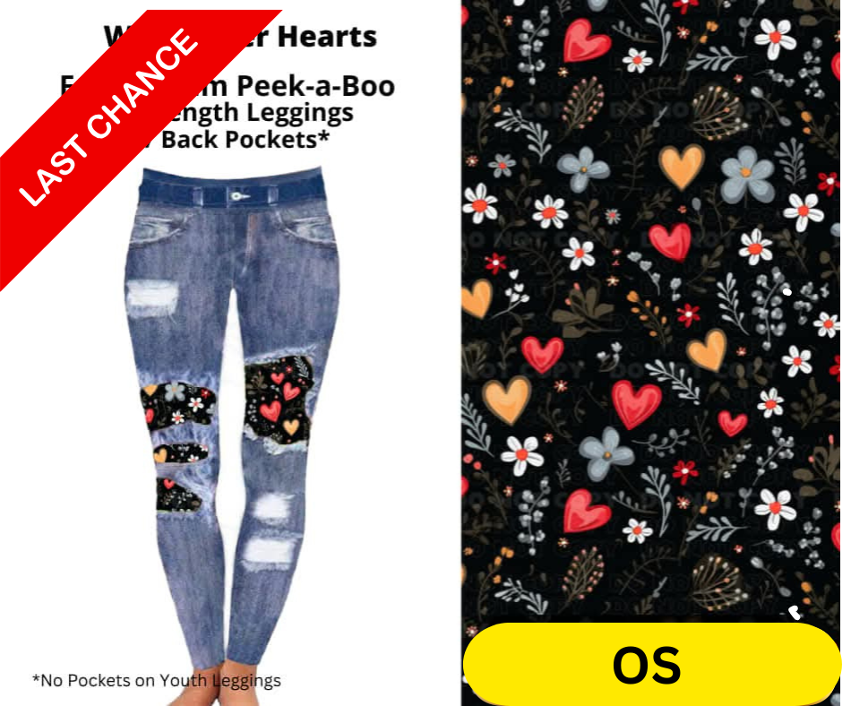 Wildflower Hearts Faux Denim Full Length Peekaboo Leggings