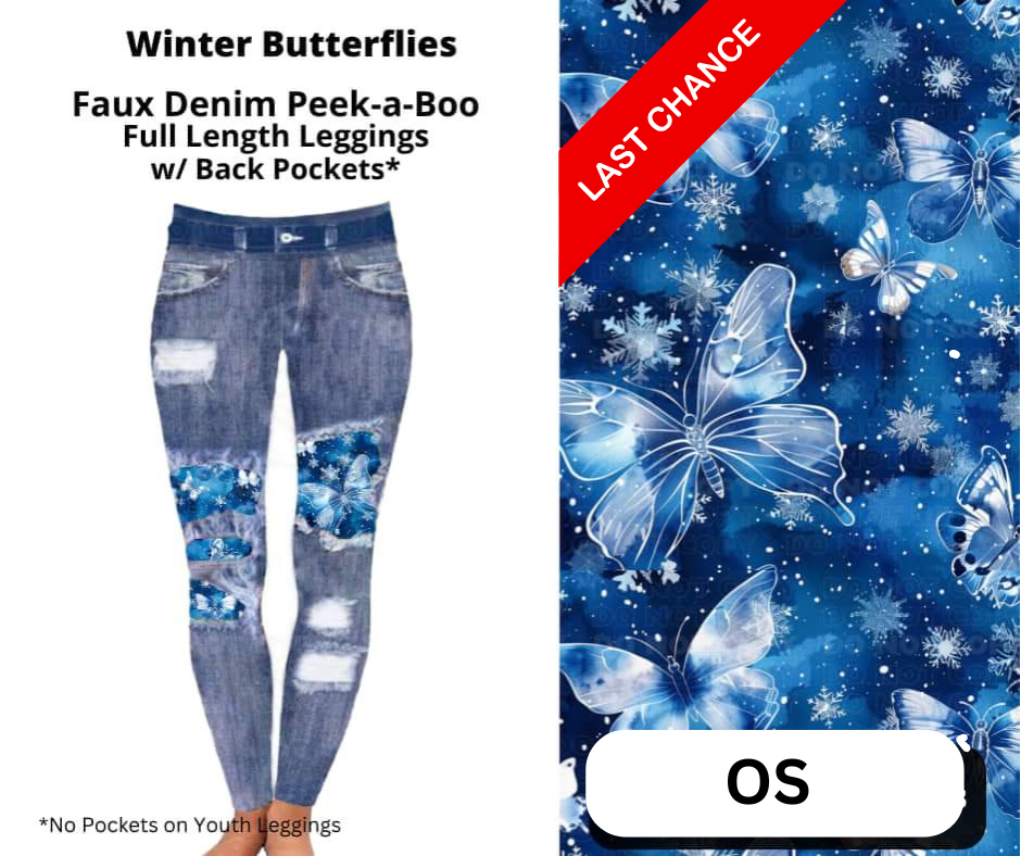 Winter Butterflies Faux Denim Full Length Peekaboo Leggings