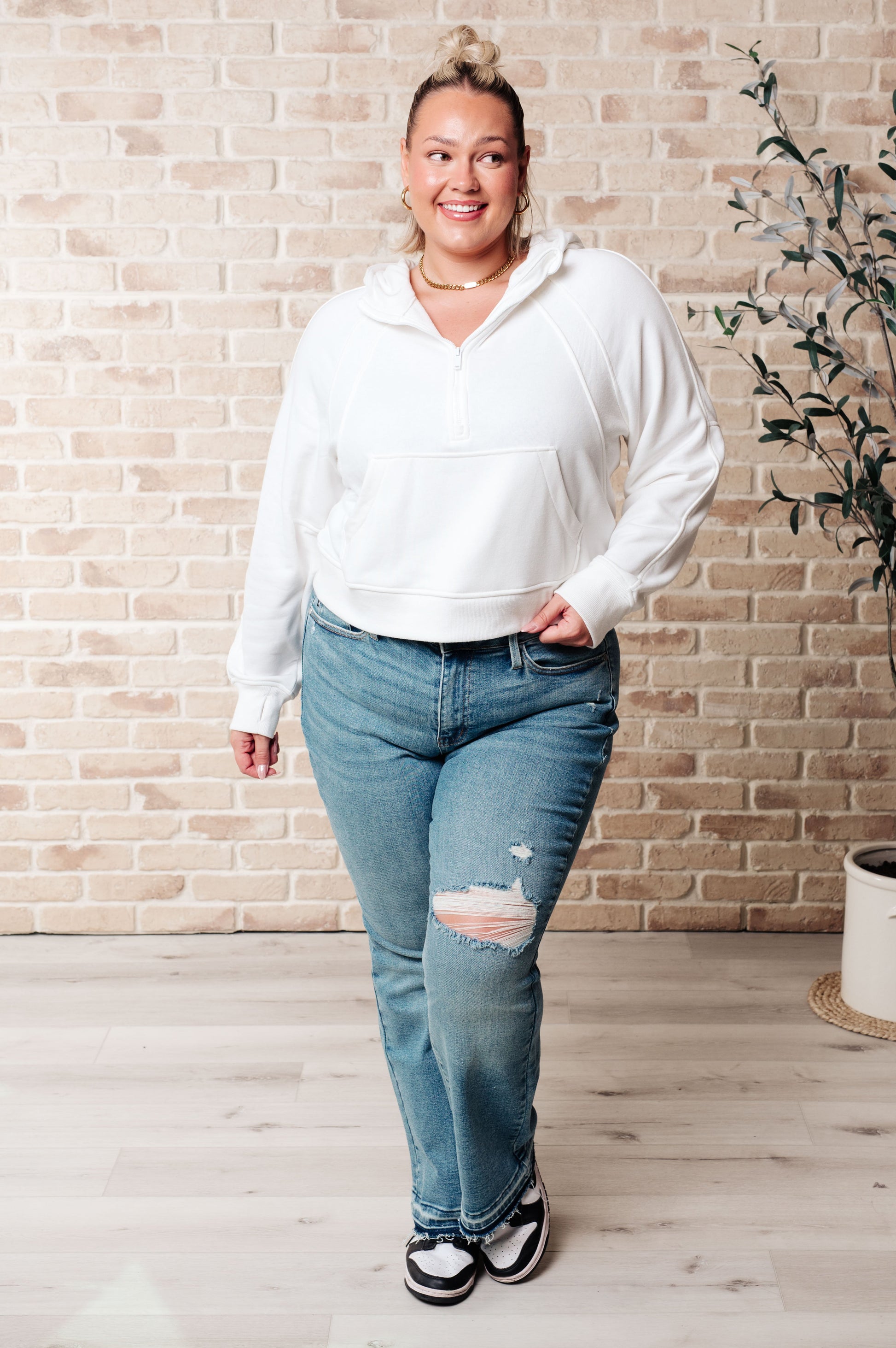 Stay cozy and stylish in our Working Up A Sweat Hooded Pullover. Made with soft terry cloth, this hooded pullover features a half zipper closure, raglan sleeves, and banded ribbed details. Keep your hands warm with the kangaroo pocket and thumb holes and adjust the fit with the ribbed hemline. Perfect for working out or lounging around!
