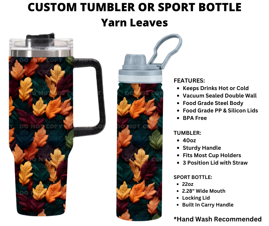 Yarn Leaves Custom Tumbler or Sport Bottle