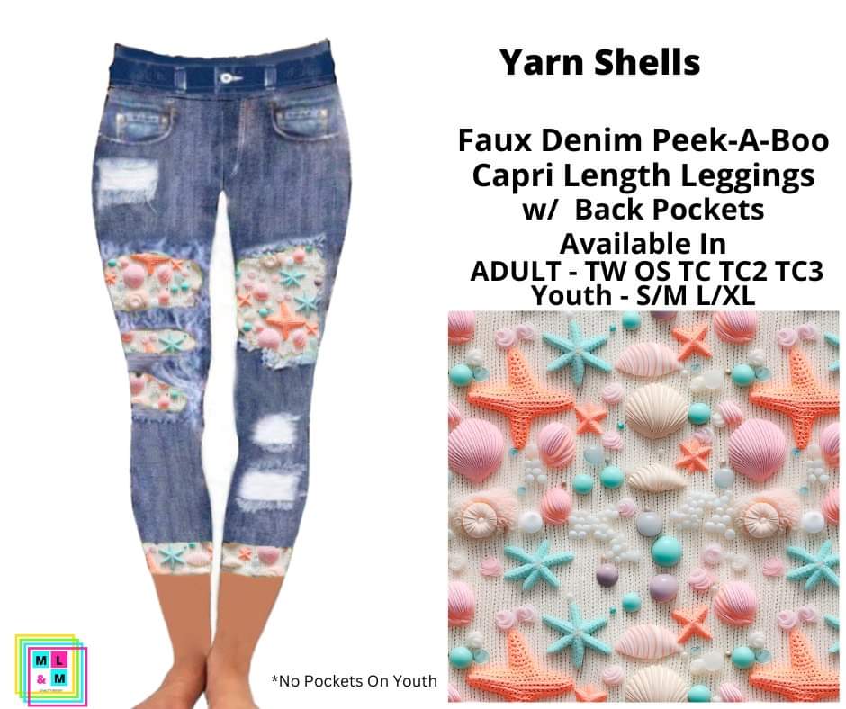Yarn Shells Faux Denim Peekaboo Capris