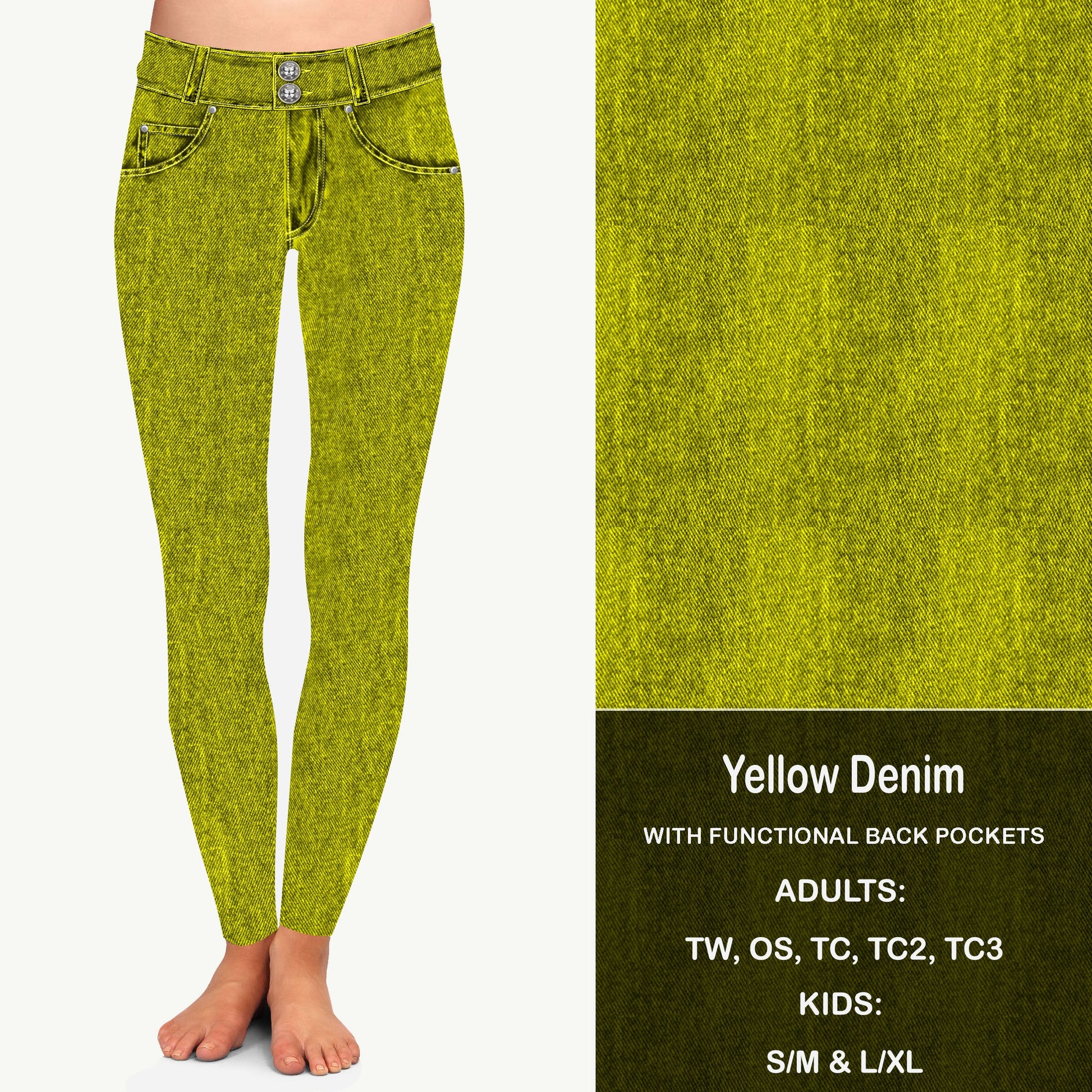 YELLOW FAUX DENIM - Leggings with Pockets Preorder Closes 8/11 ETA LATE SEPT EARLY OCT